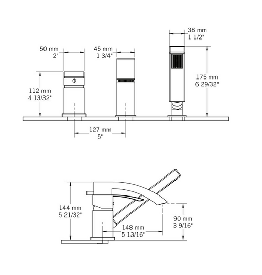 Robinet de bain 3 morceaux avec douchette Collection Fall