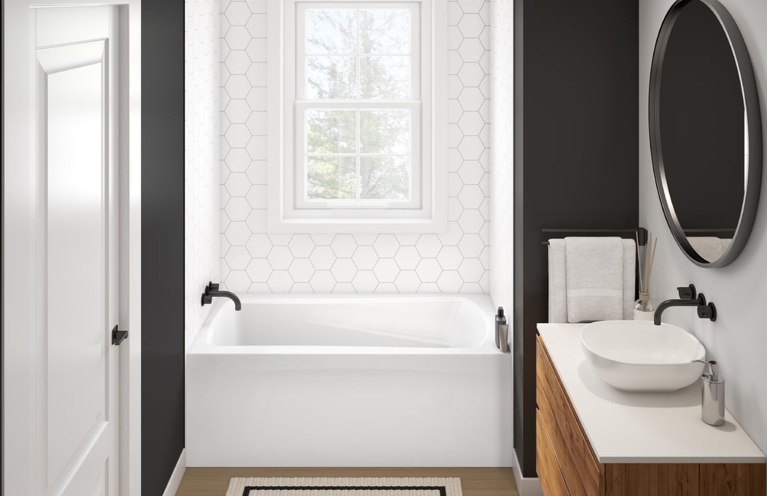 - Baignoire à jupe avec bride de carrelage intégrée pour installation en alcôve