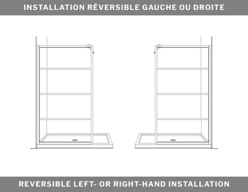 FleurcoÉcran de douche fixe avec panneau de retour Installation à gauche ou à droite Verre trempé clair de 5/16" (8mm) Hauteur: 79" (80" jusqu'au dessus ...