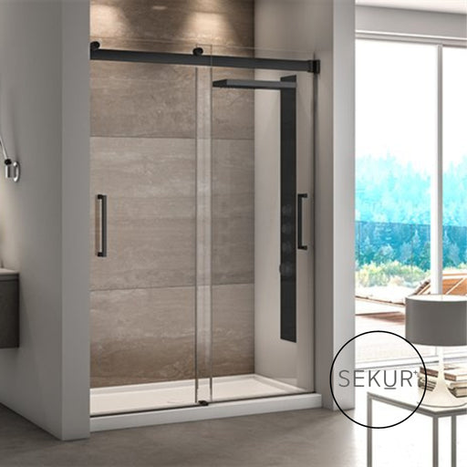Fleurco2 portes coulissantes Installation à gauche ou à droite Système anti-saut Verre trempé clair de 3/8" (10mm) ou 1/4" (6mm) Hauteur: 75" Finis dispo...