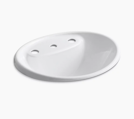 KohlerTrous de robinet déployé de 8 po (203 mm) Cuvette ovale ondulée Drain de trop-plein Fonte émaillée KOHLER® Encastré