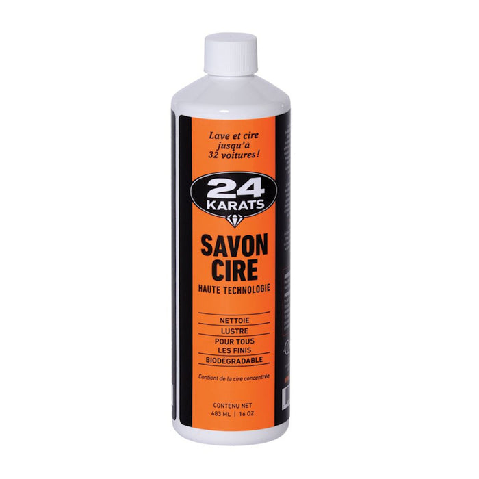 Le Savon Cire 24 Karats est votre allié tout-en-un pour l’entretien de vos véhicules et surfaces brillantes. Sa formule moussante ultra-efficace nettoie en profondeur tout en déposant une fine couche de cire protectrice, pour un fini éclatant et durable. Même si la surface est déjà cirée, ce savon régénère les propriétés hydrofuges et prolonge la durabilité de la cire.