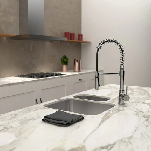 BélangerRobinet de cuisine avec bec pivotant intégrant douchette amovible et contrôle de volume.