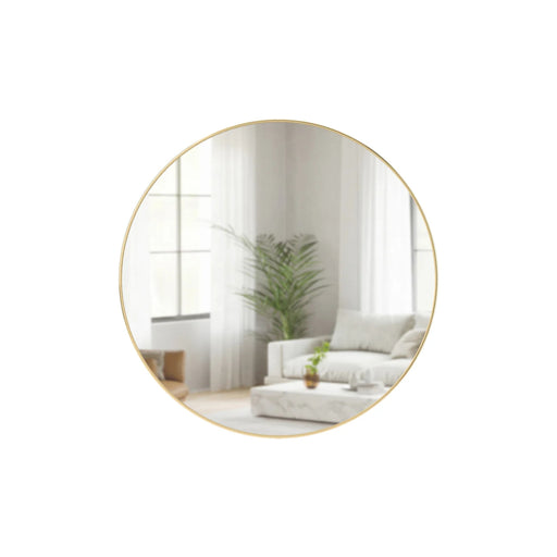 UmbraCréez un point focal lumineux et sophistiqué avec le miroir rond 34" de la Collection Hubba. Son large cadre en métal, disponible en fini doré ou n...