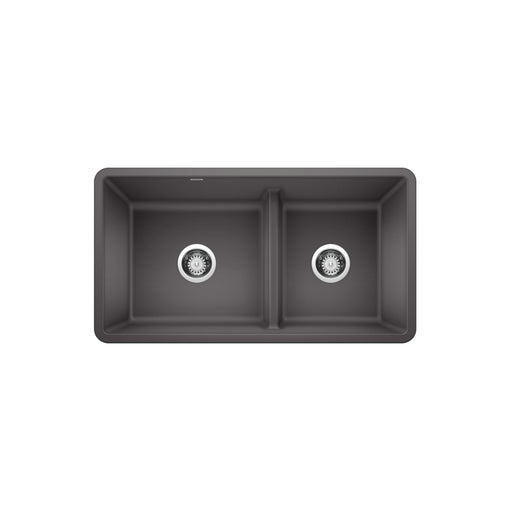 Opt for elegance and functionality with our PRECIS U 1 3/4 double kitchen sink in SILGRANIT, offering a practical design with a low divider and a c...