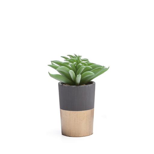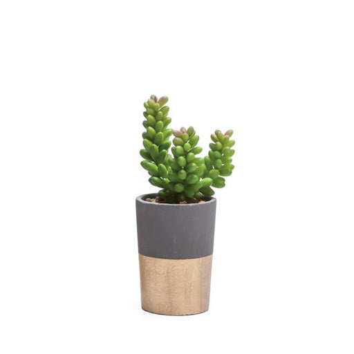 View full detailsArtificial succulent in cement and gold pot 2'' D X 3'' H