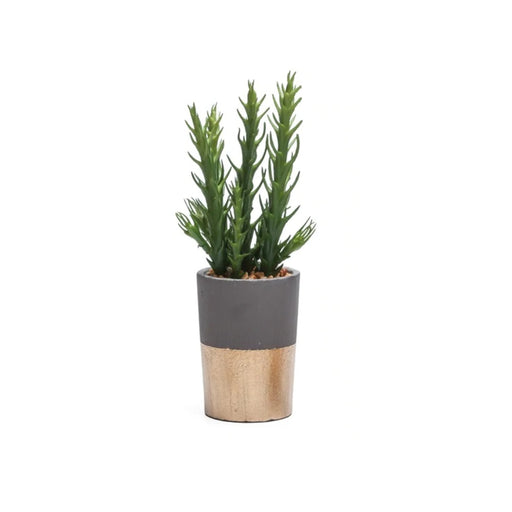 Artificial plant in cement and gold pot 2'' D X 3'' H