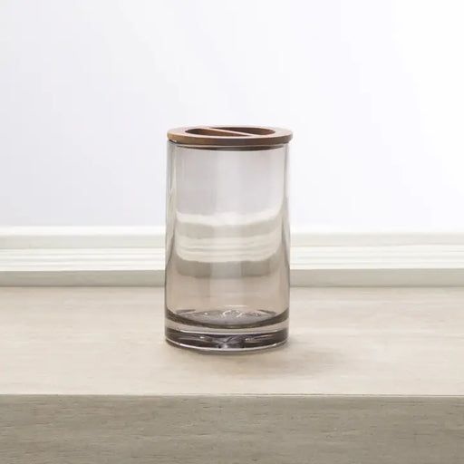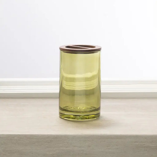 Add a modern and natural touch to your bathroom with the Vaso Collection toothbrush holder. Its refined colored glass and contrasting acacia wood b...