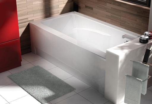 Dimensions: 48" x 36" Drain de coin gauche Cache drain en acrylique inclus Matériel: acrylique Des brides de carrelage en aluminium sont fournies...