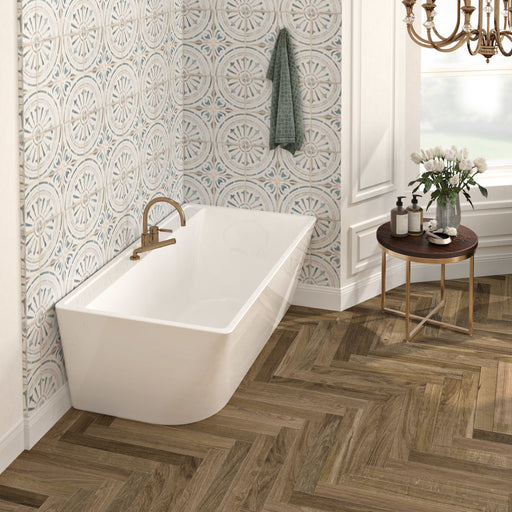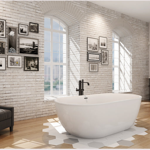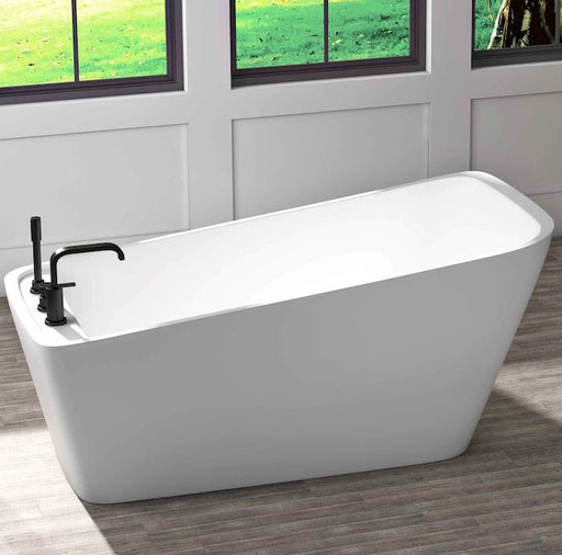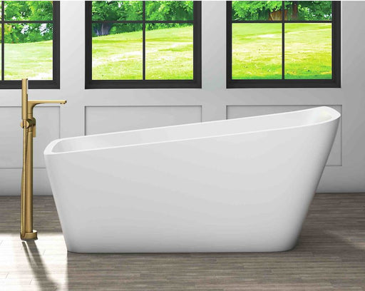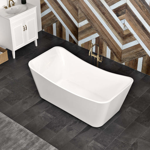 Transform your bathroom into a haven of relaxation with the Sikome freestanding bathtub. Its asymmetrical design, enhanced by a sloping backrest on...