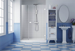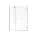 The Goccio shower door elegantly blends into sleek bathrooms. Its shiny chrome profile and clear glass offer a refined look while maximizing natural light in the shower. Perfect for alcove renovation projects.