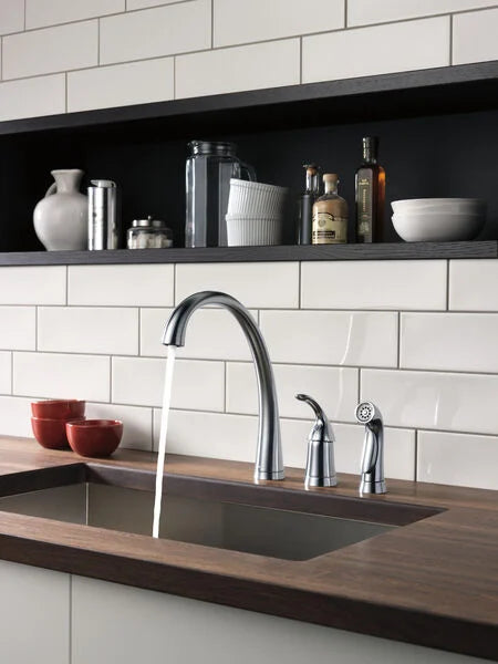 DeltaAdd this stylish and functional faucet to your kitchen and enjoy a perfect blend of contemporary style and reliable performance. Its lever handle e...