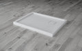 Acrylic shower base with a 12" x 12" drain, designed for an easy replacement of a corner shower. Carefully engineered to provide exceptional stability. Integrated supports distributed underneath the shower base ensure a solid product with no movement or creaking.