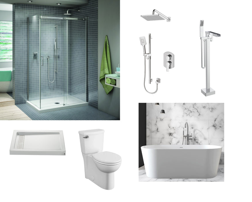 48" X 32" Shower Door and Base Set, Chrome Finish