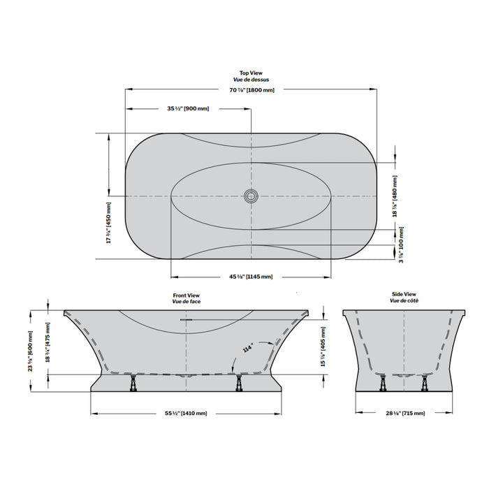 Aria Fortissimo freestanding bathtub 71" x 36"