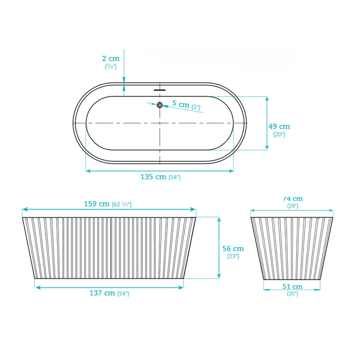 Immerse yourself in luxury with our 63-inch oval freestanding bathtub from the Ramekin Collection. Designed to captivate, this bathtub stands out with its distinctive grooved exterior design that brings a contemporary touch to any modern bathroom. Made with premium materials, it combines elegance and durability to create a striking focal point in your relaxation space.