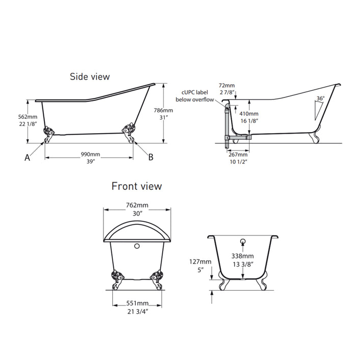 When ordering with the RAL color option, the claw feet will be painted the same RAL color chosen for the bathtub