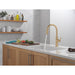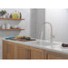 - Dual-function pull-down sprayer offers aerated stream or spray modes.