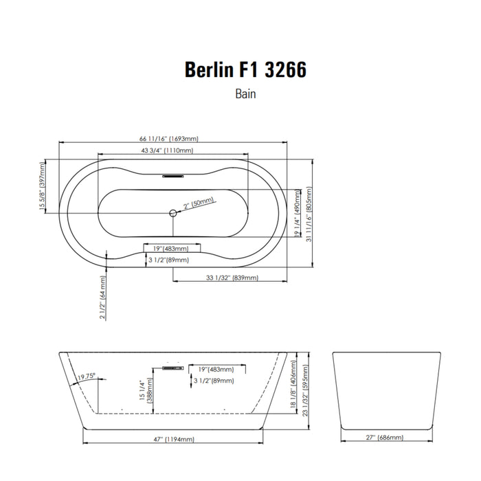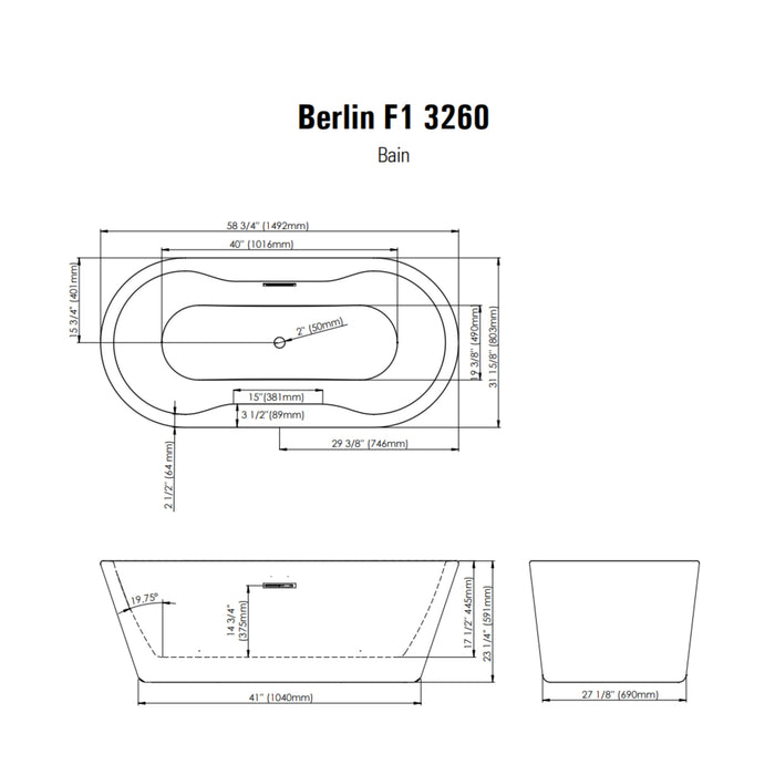 Optez pour le bain autoportant de la Collection Berlin, conçu pour transformer votre salle de bains en un havre de luxe et de fonctionnalité. Grâce à sa surface acrylique résistante aux taches et à la décoloration, ce bain offre une durabilité et une apparence toujours impeccable. Son fini brillant confère une allure élégante et sophistiquée, parfaite pour une salle de bains contemporaine.