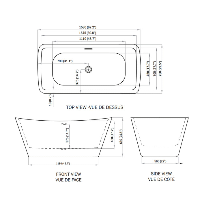Découvrez la baignoire autoportante rectangulaire de la Collection Ramona, un mariage parfait de style contemporain et de fonctionnalité pour votre salle de bain. Fabriquée en acrylique blanc lustré, cette baignoire offre une durabilité exceptionnelle et un entretien facile. Son design rectangulaire épuré s'intègre harmonieusement à tout décor, ajoutant une touche d'élégance à votre espace de relaxation.