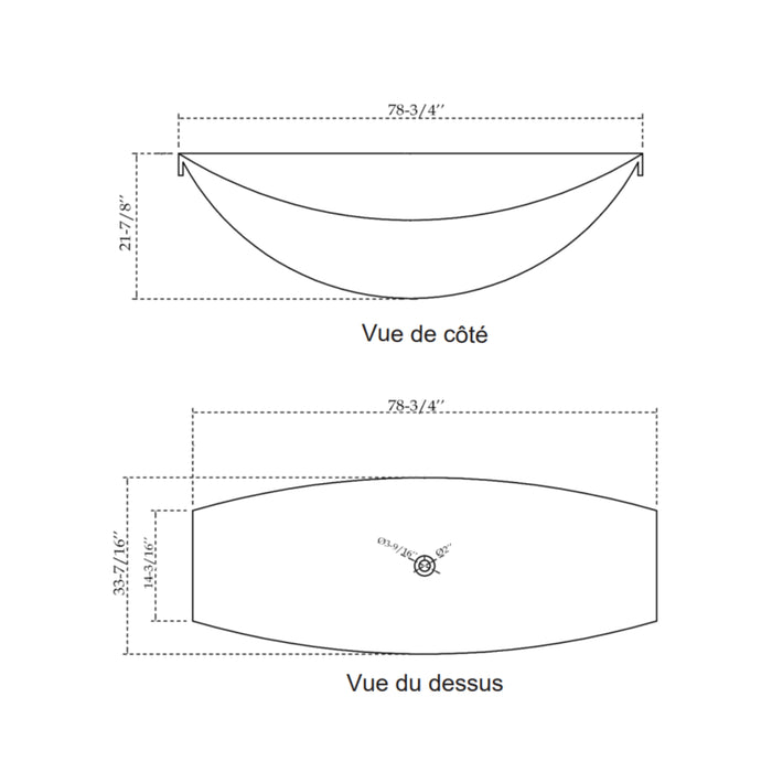 - Hamacs flottants devant être soutenus par un support mural en béton de 7 ¾ po à 8 5/8 po (non inclus)