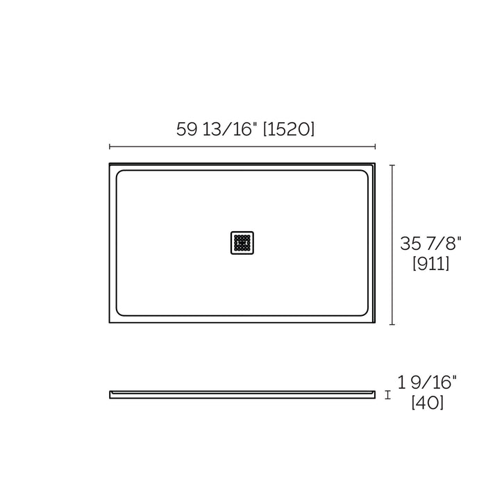 Base de douche en aggloméré de pierre 2 côtés 60" x 36"