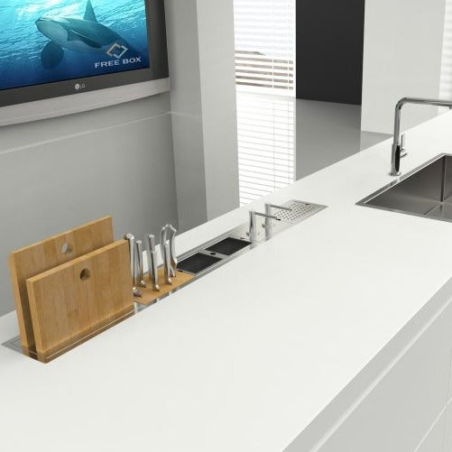 Améliorez votre espace de cuisine avec la station de préparation Slim de la Collection Panama. Conçue pour allier élégance et fonctionnalité, cette station de préparation est idéale pour les cuisines modernes où l'optimisation de l'espace est essentielle. Son design élégant ajoute une touche de sophistication à toute cuisine et est idéal pour ceux qui cherchent à maximiser chaque centimètre de leur espace de préparation.