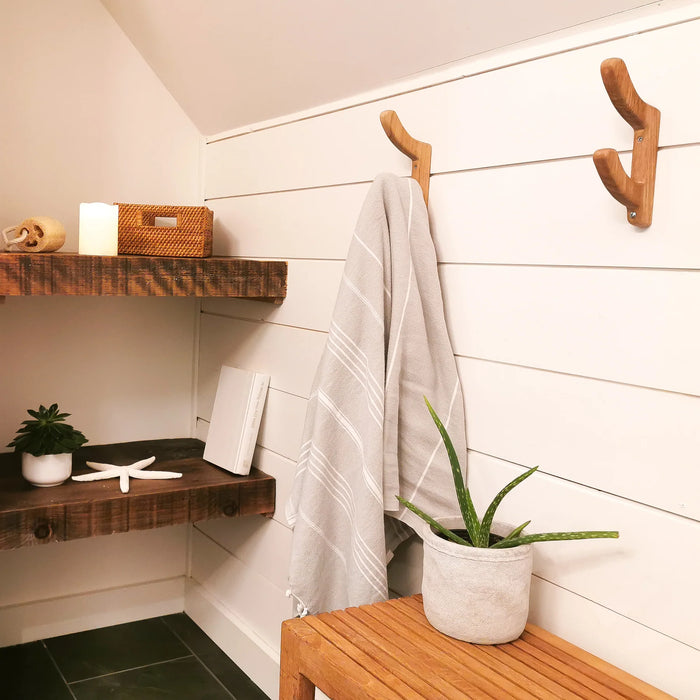 Apportez une touche d’élégance pratique avec les crochets à serviettes en teck. Fabriqués en teck de qualité A, ces crochets offrent non seulement une solution de rangement épurée, mais rehaussent également l’esthétique de votre espace grâce aux variations naturelles du bois.