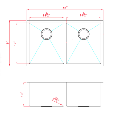 - Évier 2 bacs à encastrer avec coins de rayon 15 mils