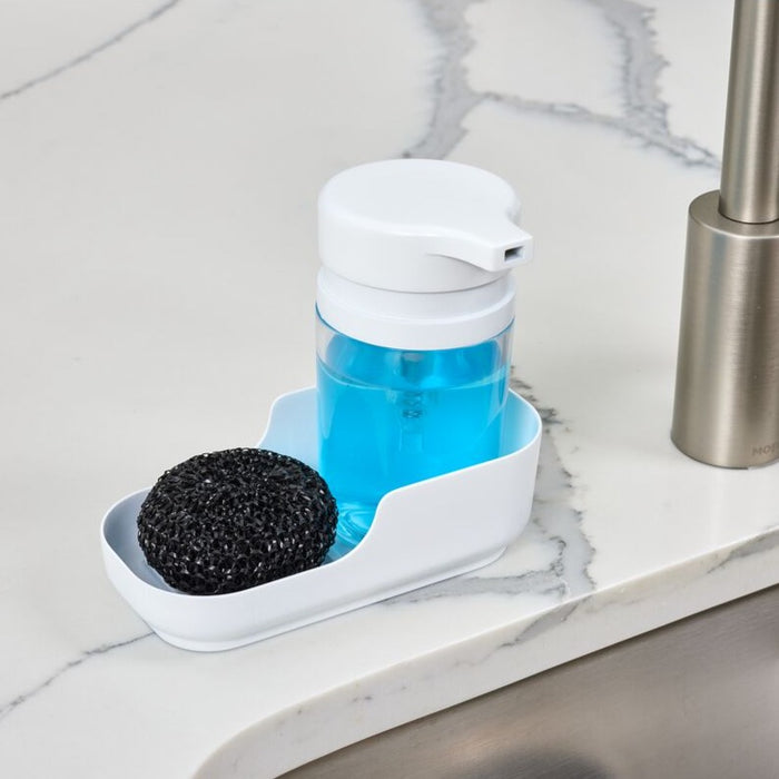 Avec la pompe à savon avec plateau de la Collection IDesign, gardez votre espace propre et bien rangé. Le plateau peut accueillir des accessoires nécessaires à l'entretien de votre évier.