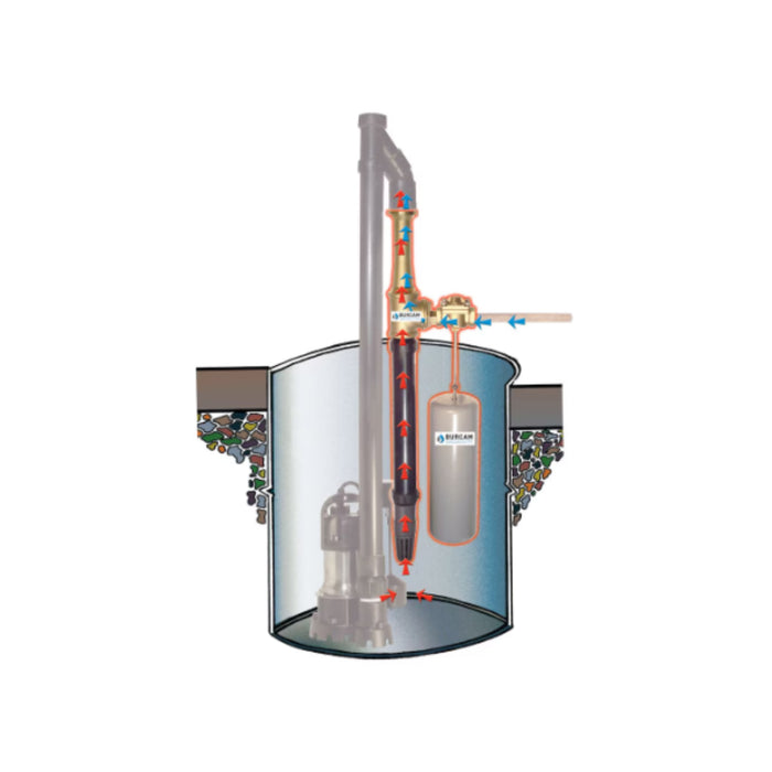 - Se branche facilement à l'alimentation d'eau de la municipalité, ainsi qu'au conduit de refoulement de votre pompe puisard