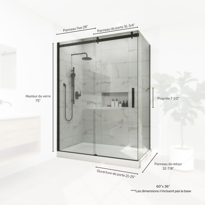 Porte de douche 2 côtés 60" X 36" Collection D'Youville