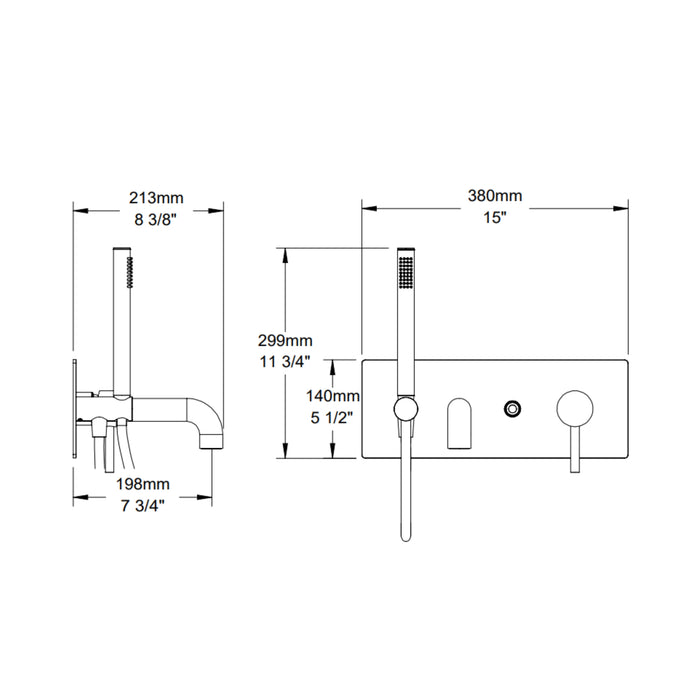 - Bec de bain : 18 l/min (4.8 gpm) – 60 psi