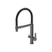 - Design unique à double bec : Bec extensible pour eau chaude et froide avec commande à droite. Bec fixe intégré dans la barre transversale pour le système d’eau filtrée, avec commande à gauche.